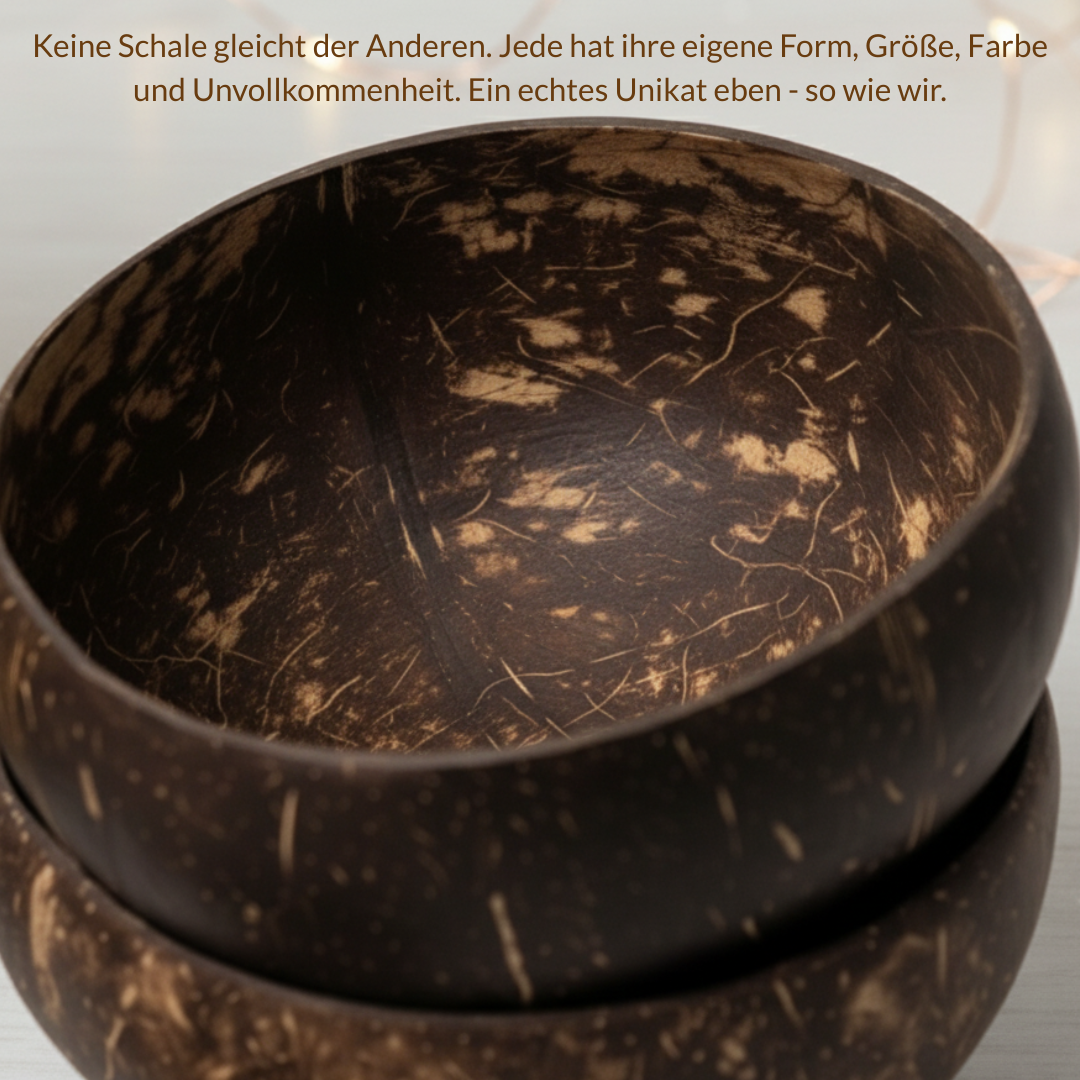 - 2 handgefertigte Kokosnuss Schalen aus upgecycelten Kokosnussschalen