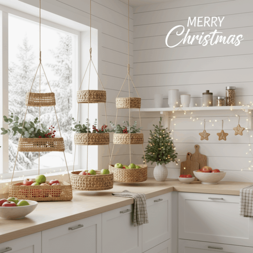 Die Hängekörbe, aus getrockneten Naturfasern, zeichnen sich durch lange und robuste Haltbarkeit aus und sind die optimale Lösung, um begrenzten Raum in jedem Zimmer effizient zu nutzen. z.B. in der Küche für Obst und Gemüse, im Bad für Kosmetik, Bürsten und Handtücher…